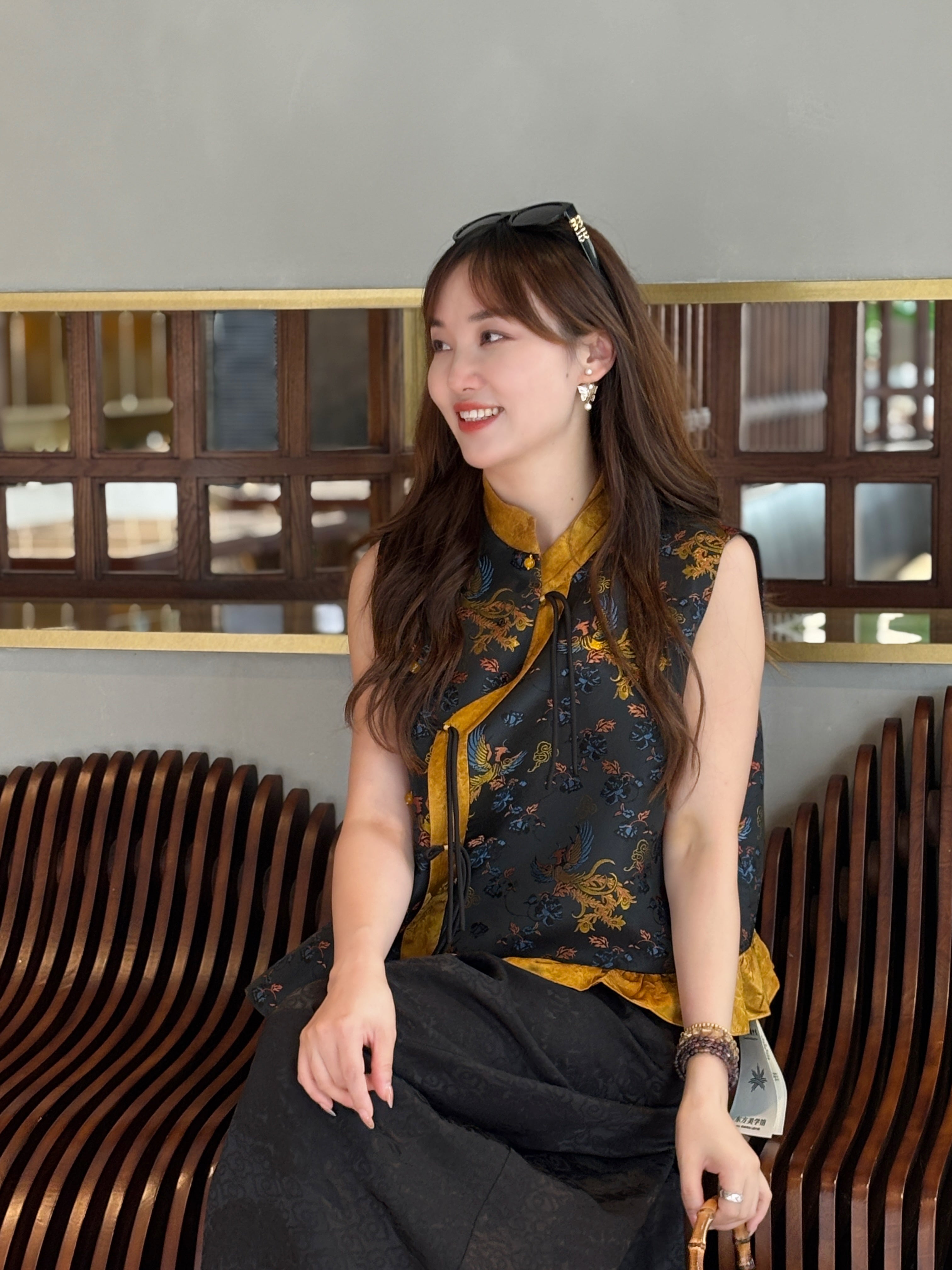 Brown Phoenix & Peony Xiangyunsha Vest | Symbolic Chinese Elegance