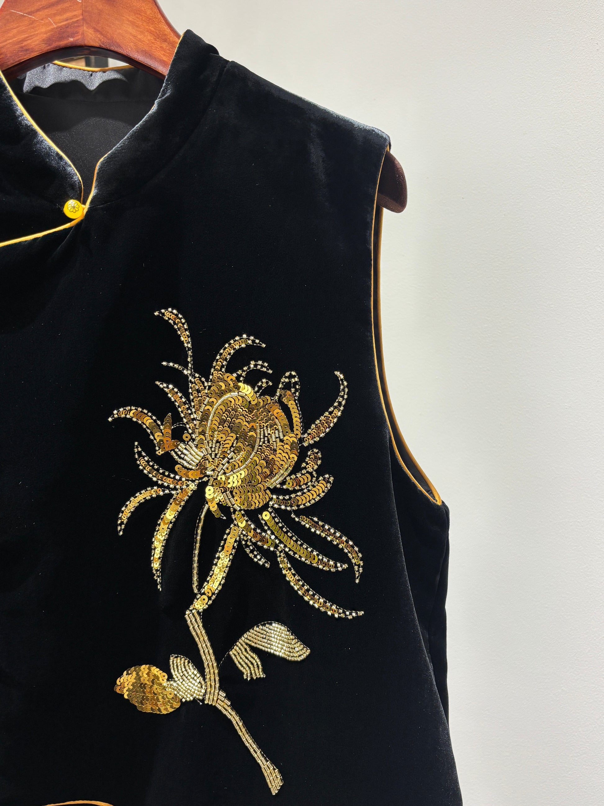 Black Velvet Sequin Vest | Luxe Orienta Modern Chinese Fashion