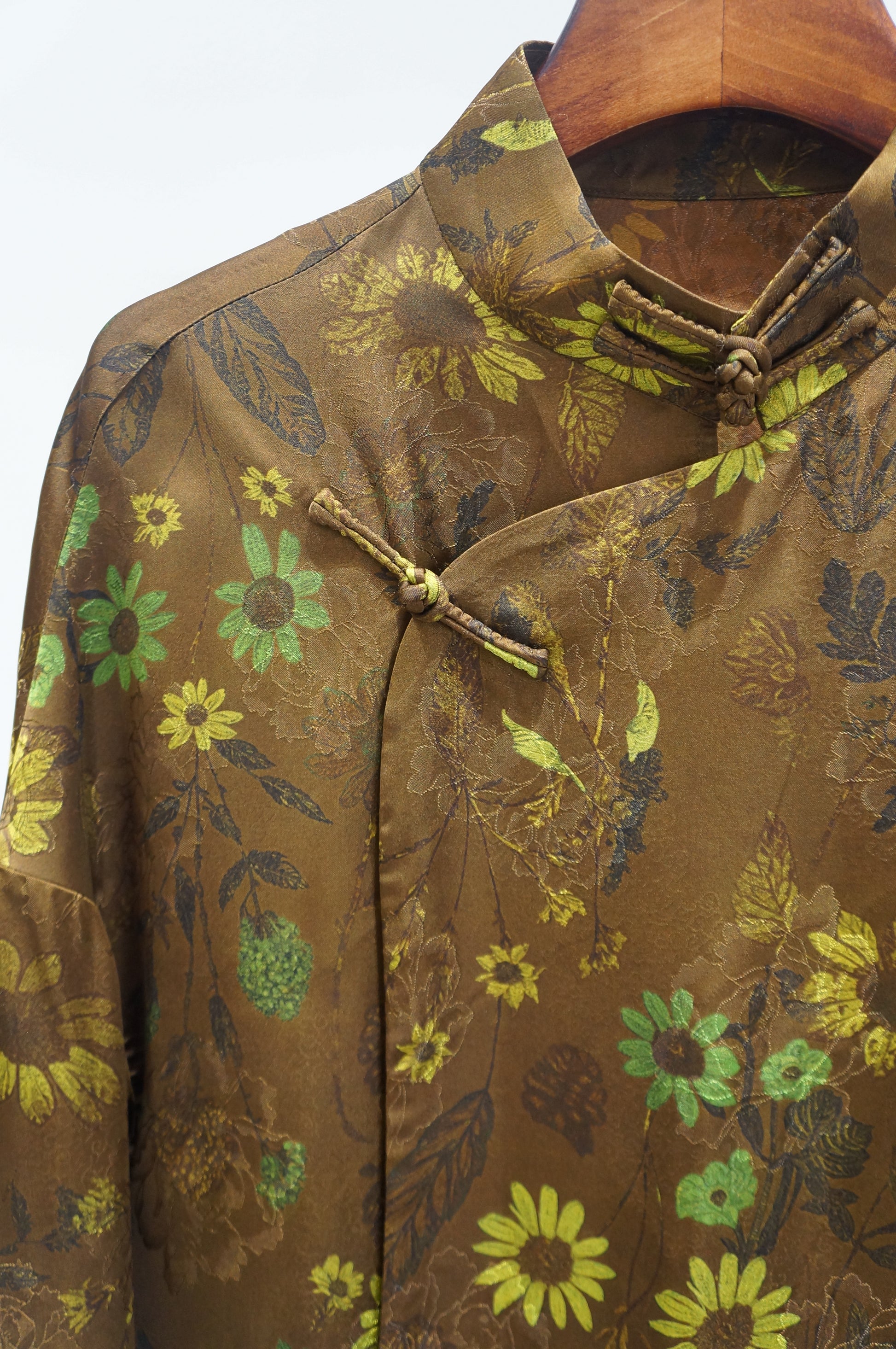 Brown Daisy Xiangyunsha Blouse | Modern Chinese Elegance