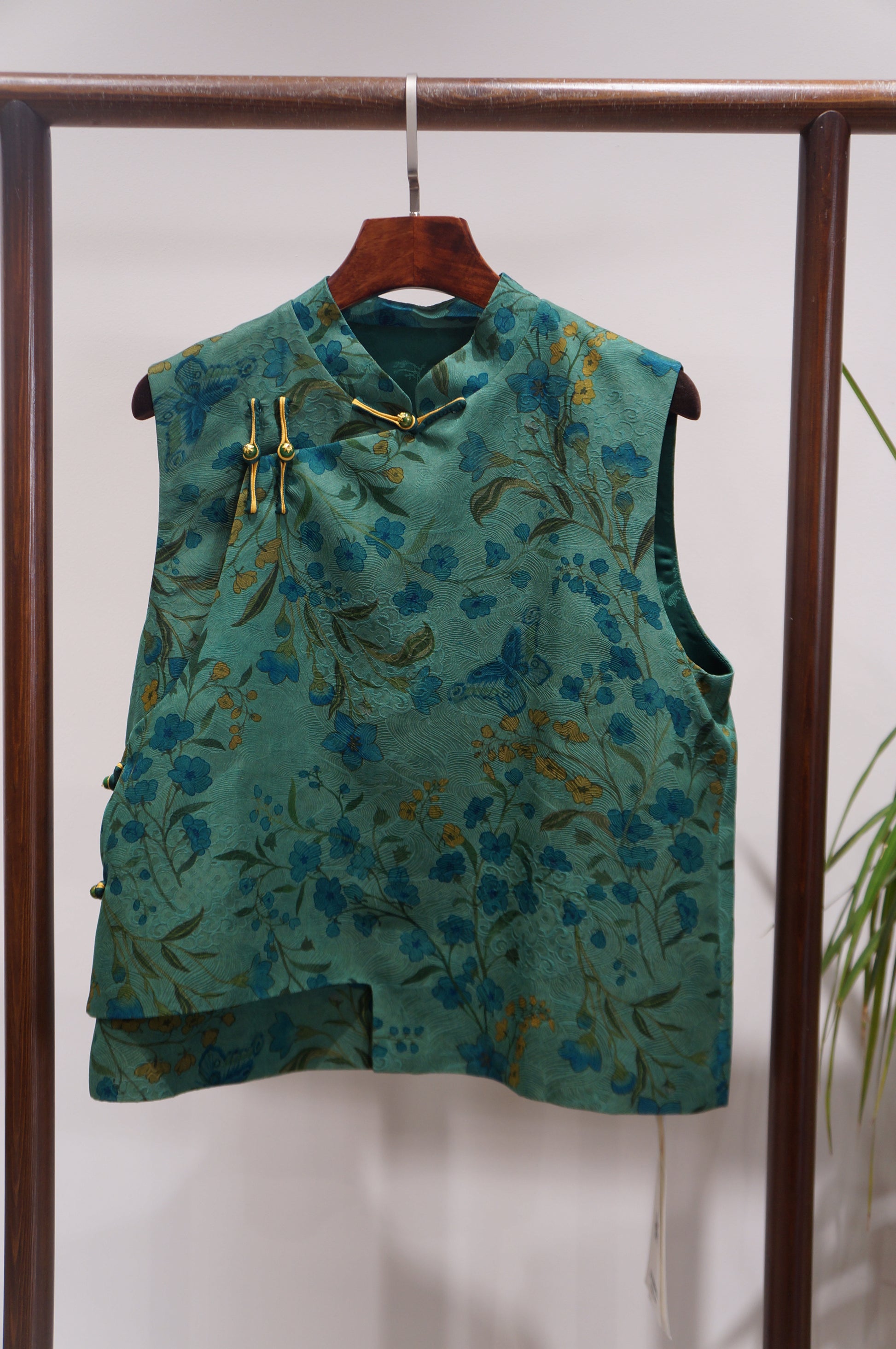Green Mulberry Silk Vest | Modern Chinese Sophistication