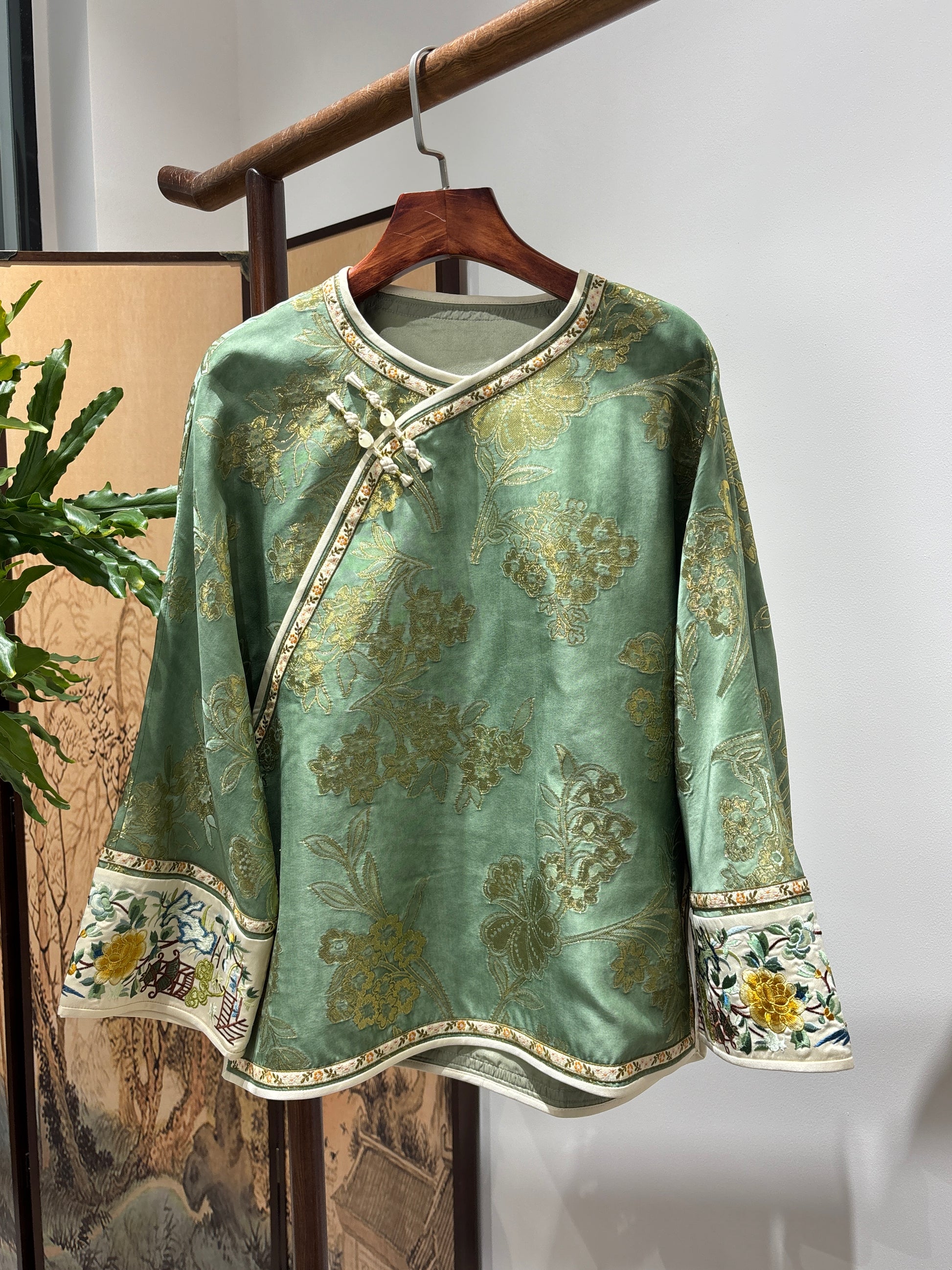 Green Silk Embroidered Style Blouse | Luxe Orienta Modern Chinese Fashion