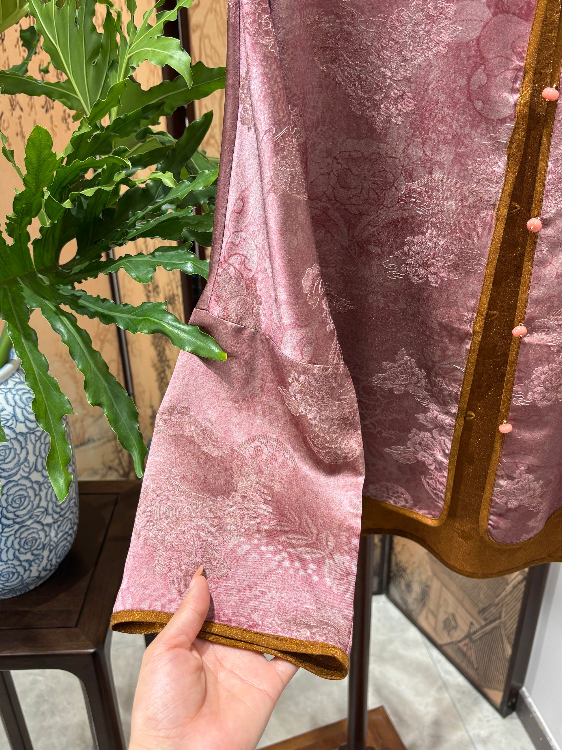 Pink Rayon Xiangyunsha Cardigan – Soft Elegance with Heritage-Inspired Charm