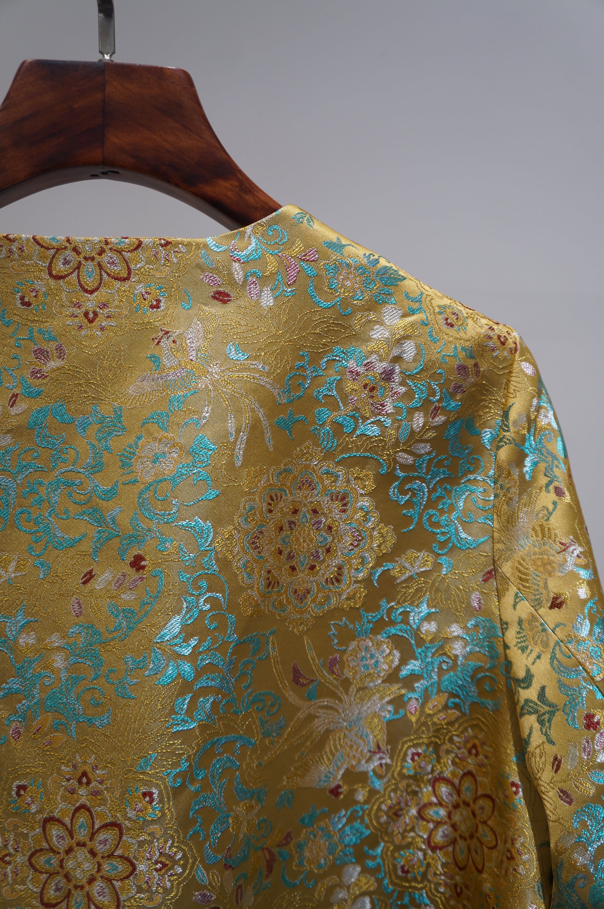 Elevate your wardrobe with this Yellow Song Brocade Jacket, where centuries-old Chinese textile artistry meets modern design sensibility. Luxurious Song brocade weaving, vibrant yellow tones, and a tailored silhouette make it a standout piece for both formal occasions and elevated daily wear.